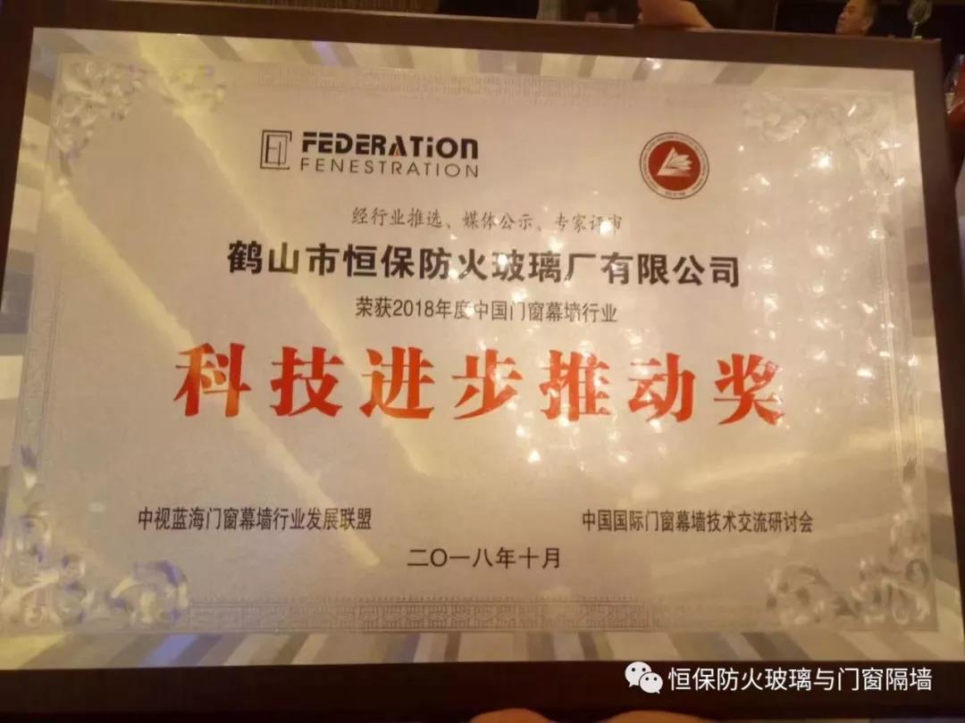 鶴山恒保公司在此次交流研討會(huì)中,獲大會(huì)專家評(píng)審并頒發(fā)2018年度中國門窗幕墻行業(yè)“科技進(jìn)步推動(dòng)獎(jiǎng)”。