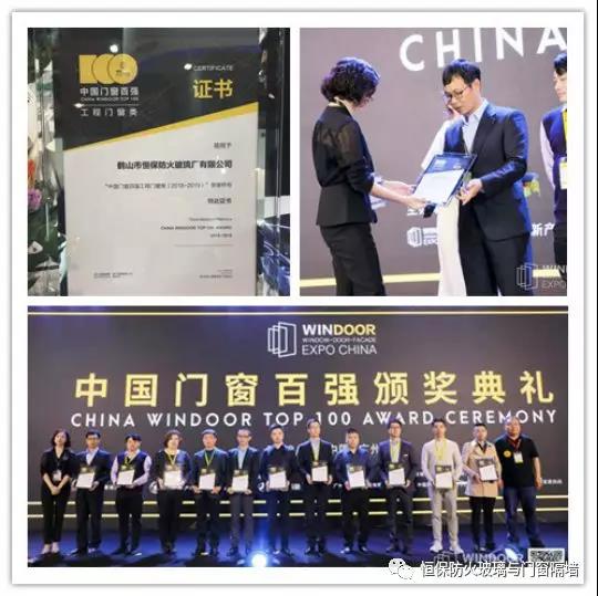 同期3月5日上午,由鋁門窗幕墻新產(chǎn)品博覽會(huì)、中國房地產(chǎn)業(yè)與門窗幕墻聯(lián)盟、中國建筑金屬結(jié)構(gòu)協(xié)會(huì)鋁門窗幕墻委員會(huì)等單位聯(lián)合評(píng)審,經(jīng)過多家地產(chǎn)商和業(yè)主的選材經(jīng)驗(yàn)共享認(rèn)可,鶴山恒保公司獲得“中國門窗百強(qiáng)工程門窗類(2018-2019)榮譽(yù)稱號(hào)”。