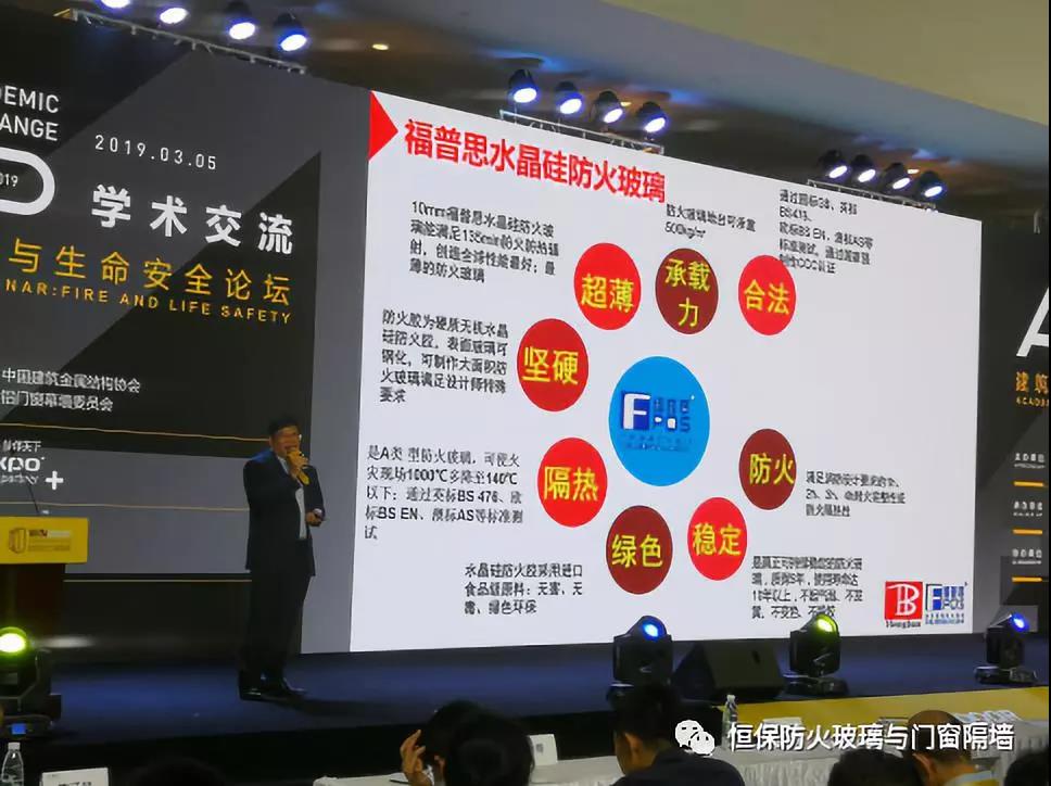 在這次展會(huì)中,恒保公司榮獲兩大獎(jiǎng)項(xiàng),獲各界客商對(duì)恒保的肯定和實(shí)力的彰顯。在第25屆鋁門窗幕墻新產(chǎn)品博覽會(huì)歡迎晚宴暨第5屆中國門窗幕墻創(chuàng)新星品獎(jiǎng)?lì)C獎(jiǎng)典禮中,鶴山恒保榮獲2019年度“創(chuàng)新新品獎(jiǎng)”。3月5日上午,陳沃林總經(jīng)理并在星品匯現(xiàn)場(chǎng)演講《CCC認(rèn)證超大甲級(jí)防火窗(地鐵高鐵控制室觀察窗)》。恒保GFC3020超大甲級(jí)防火窗,具有非常好的防火隔熱性能,完全滿足甲級(jí)防火窗的要求,且10年以上不發(fā)黃、不發(fā)白穩(wěn)定可靠。認(rèn)證尺寸寬3000mm高2000mm,是目前中國已獲國家檢驗(yàn)報(bào)告和CCC強(qiáng)制性認(rèn)證的單塊玻璃尺寸最大的防火窗;整窗都滿足防火完整性和隔熱性1.5小時(shí)的要求,既符合建筑設(shè)計(jì)防火規(guī)范條例,又滿足窗的通透性,美觀實(shí)用。完美解決了地鐵高鐵消防控制室超大甲級(jí)防火觀察窗合法化的問題,是地鐵高鐵等重要場(chǎng)所設(shè)備用房的防火觀察窗必選產(chǎn)品。