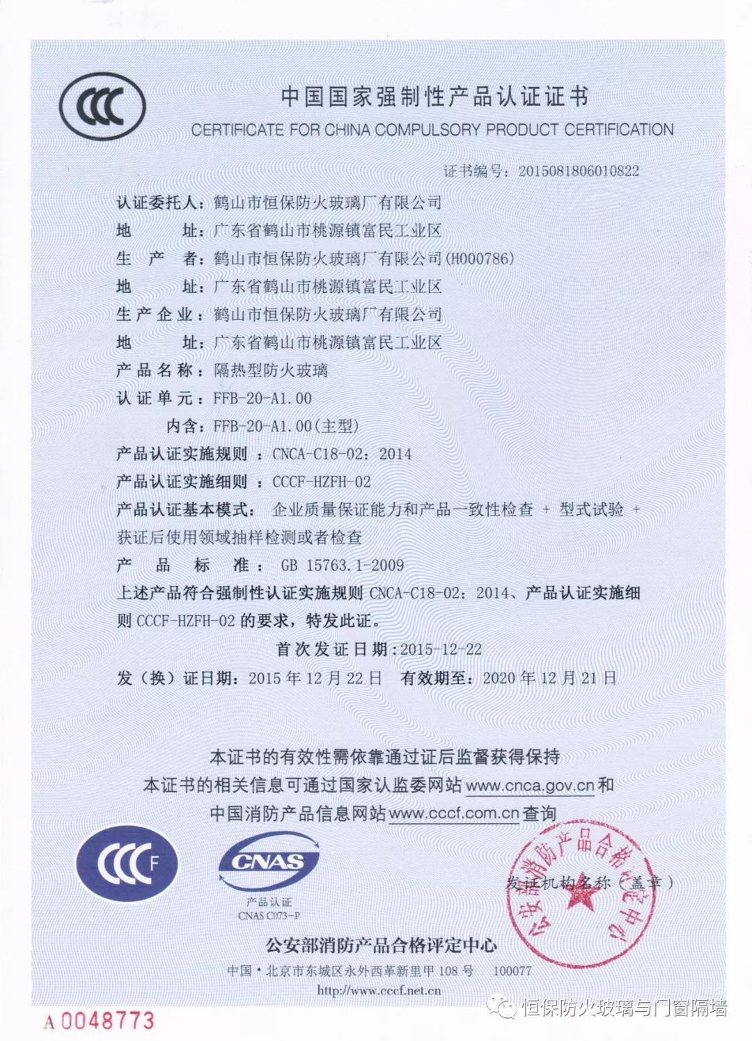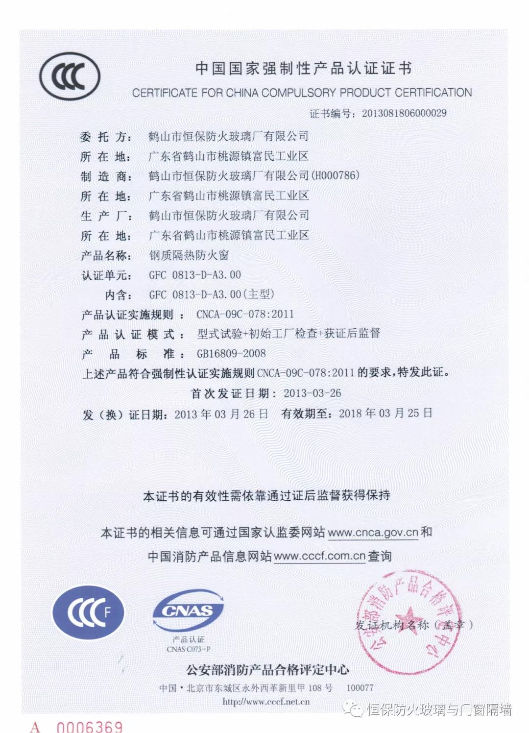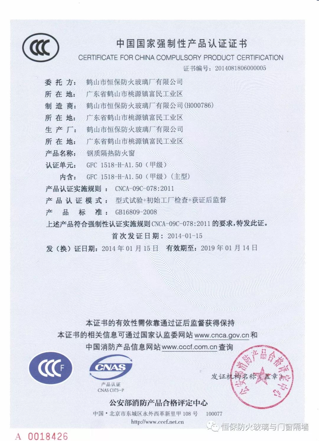4.恒保公司一共12個(gè)產(chǎn)品獲得國(guó)家3C認(rèn)證證書,2小時(shí)和3小時(shí)鋼質(zhì)隔熱防火窗更是國(guó)家首個(gè)通過國(guó)家認(rèn)證的產(chǎn)品;