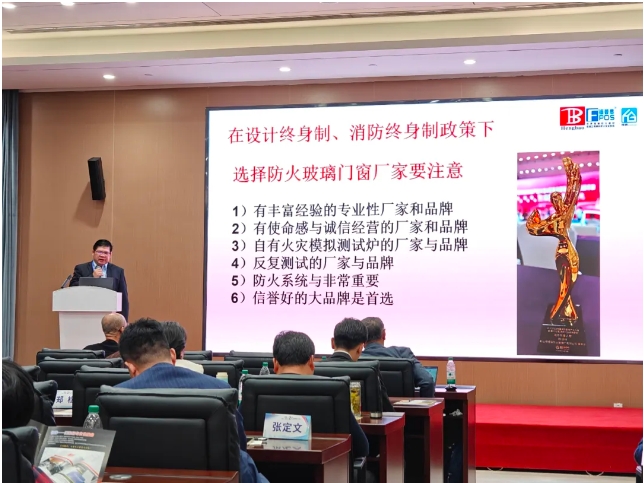 恒保董事長(zhǎng)陳沃林先生在論壇上分享報(bào)告《高品質(zhì)防火玻璃及其在超高層建筑核心筒中的應(yīng)用》,從正確認(rèn)識(shí)防火玻璃、什么是高品質(zhì)防火玻璃、高層建筑消防當(dāng)前趨勢(shì)以及高品質(zhì)防火玻璃系統(tǒng)在高層建筑中的應(yīng)用四個(gè)方面介紹防火玻璃系統(tǒng)產(chǎn)品在高層建筑消防的作用,并分享如何正確選擇防火玻璃系統(tǒng)產(chǎn)品的經(jīng)驗(yàn),讓高層建筑更加美觀實(shí)用的同時(shí),避免出現(xiàn)火災(zāi)時(shí)“防火玻璃”不防火的現(xiàn)象。陳沃林先生呼吁大家共同抵制假冒偽劣防火玻璃產(chǎn)品,對(duì)建筑消防安全負(fù)責(zé)、對(duì)生命安全負(fù)責(zé)。